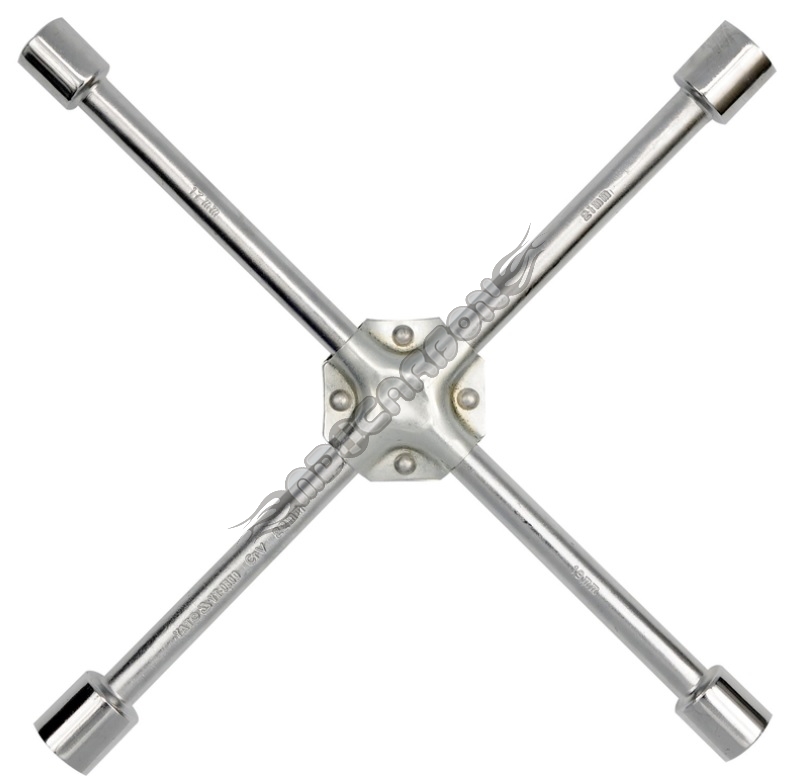 Krzyżakowy klucz do kół samochodowych wykonany z wysokiej jakości stali chromo-wanadowej. Posiada 4 ramiona z nasadkami, dostosowanymi do wszystkich sześciokątnych, metrycznych rodzajów śrub i nakrętek stosowanych w samochodach osobowych i lekkich dostawczych.