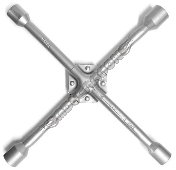 Klucz krzyżakowy do kół wykonany ze stali malowanej proszkowo ze wzmocnieniem. 17x19x21x23mm