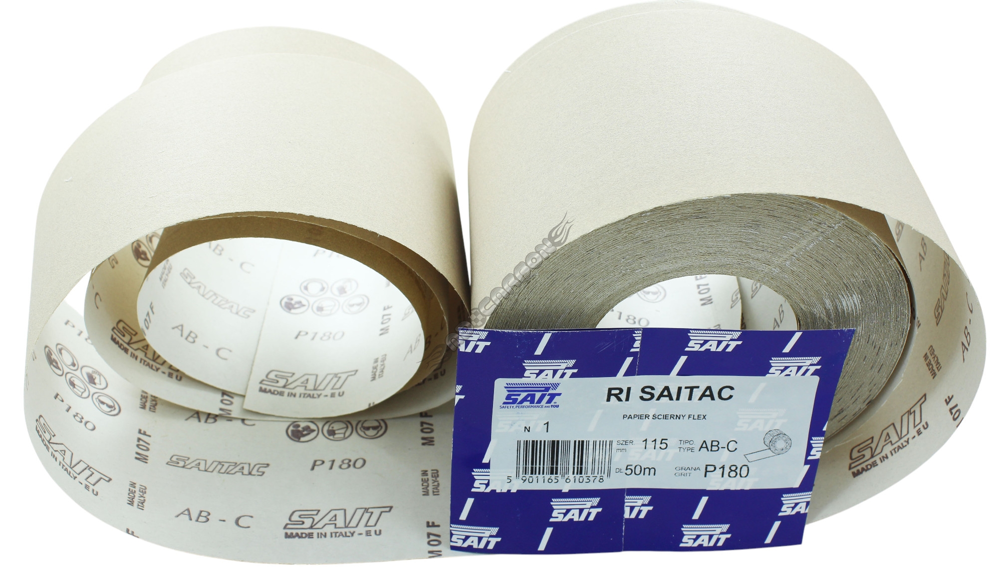 Strona główna » ARTYKUŁY ŚCIERNE » Papiery ścierne rolka » Papier ścierny P 220 SAIT FLEX AB-C metal lakier gładź drewno tworzywa 11,5cm x1 m.b.