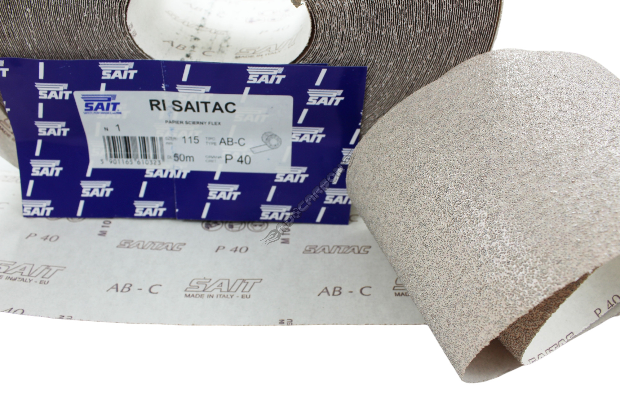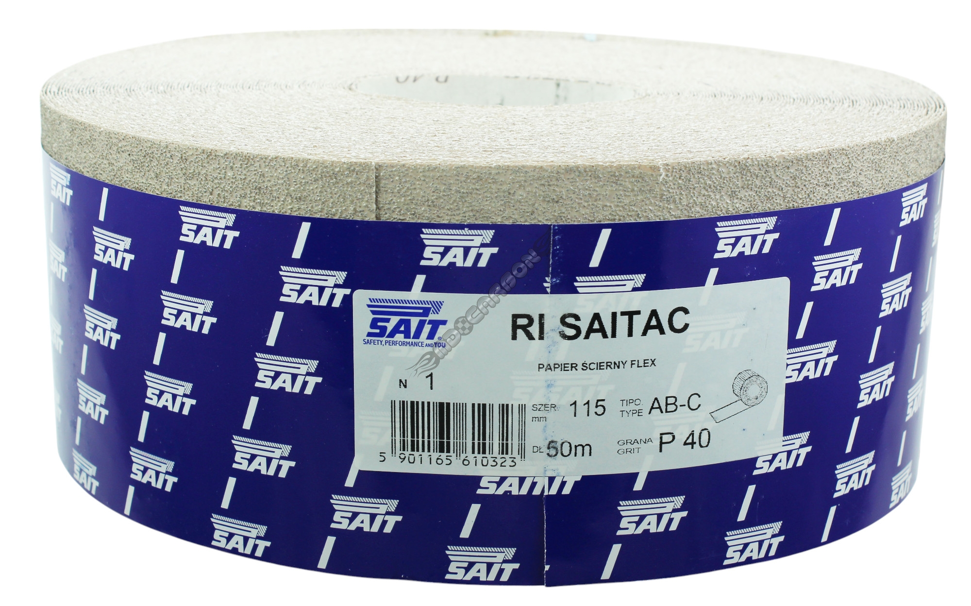 Strona główna » ARTYKUŁY ŚCIERNE » Papiery ścierne rolka » Papier ścierny P 40 SAIT FLEX AB-C metal lakier gładź drewno tworzywa 11,5cm x1 m.b.